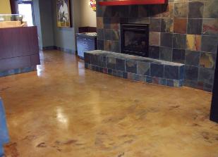 It's a Grind - Floor preparation, hand-poured underlayment, acid staining to create a finished floor for heavily trafficked dining and sales floor. |